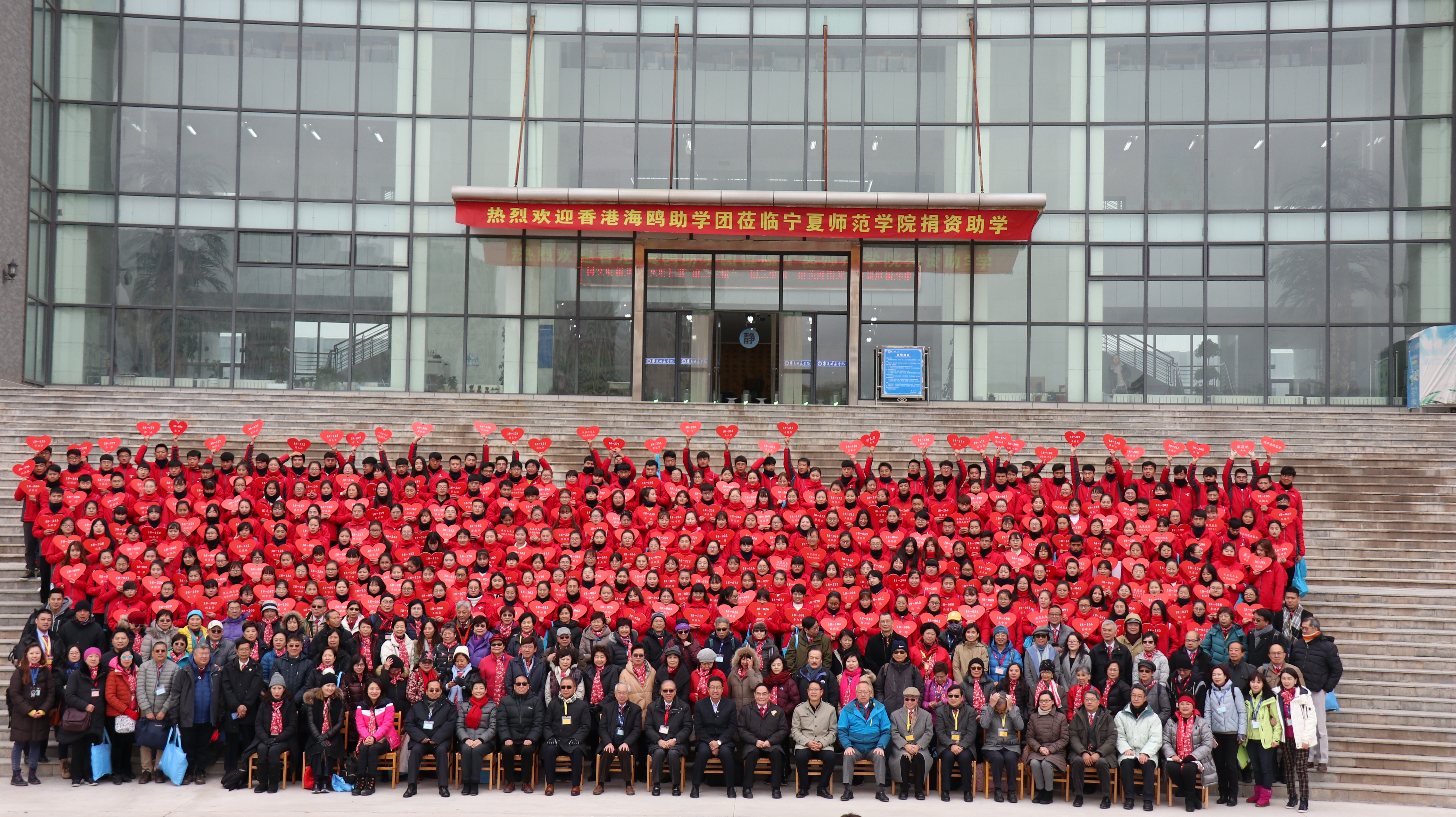 19.11.01-07   七天,香港海鷗助學團到甘肅蘭州助學,本基金撥款人民幣12萬元贊助12位清貧大學生。賴國明、黃壽良、黃錫雄親到現場與受助學生見面。