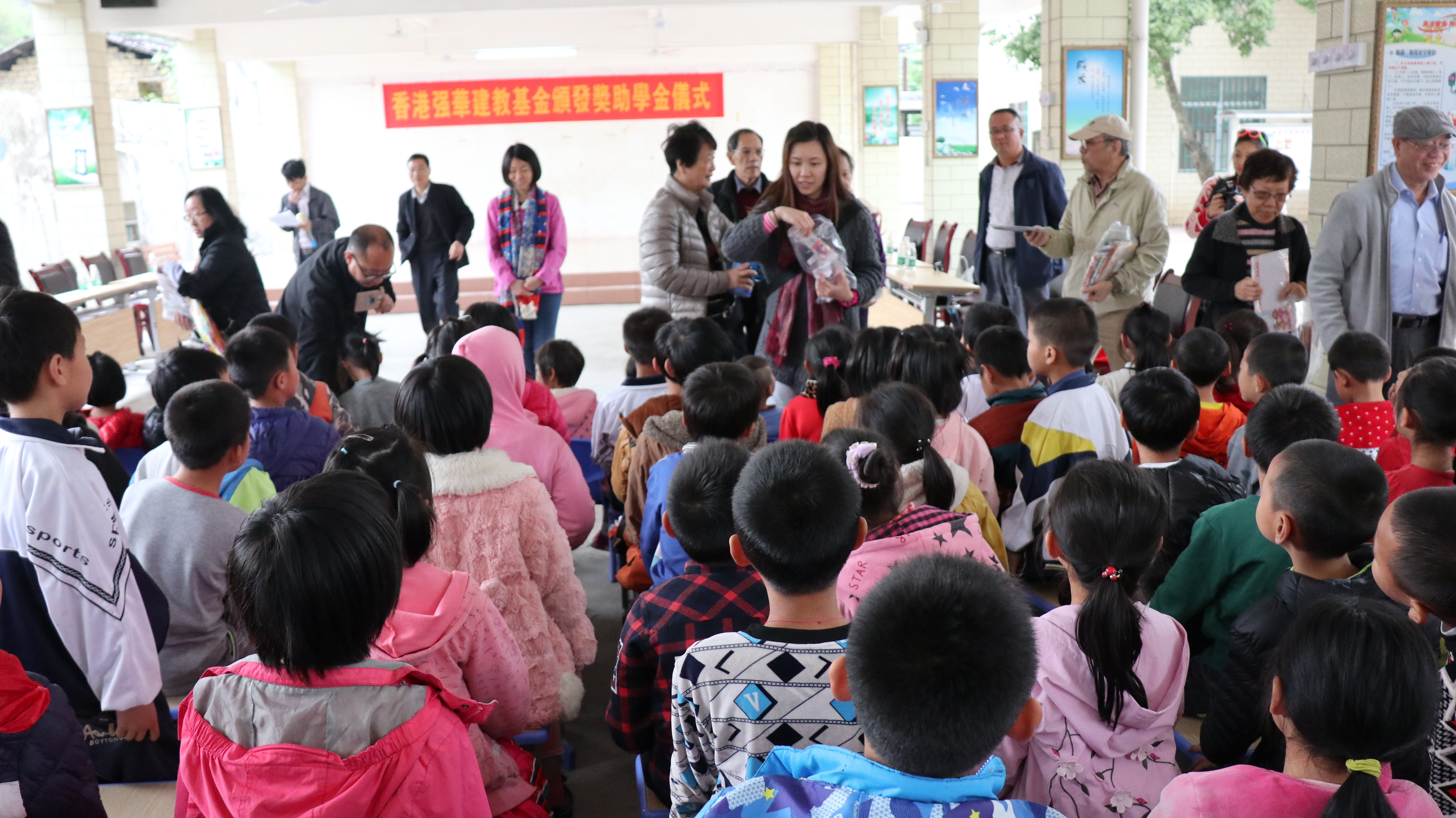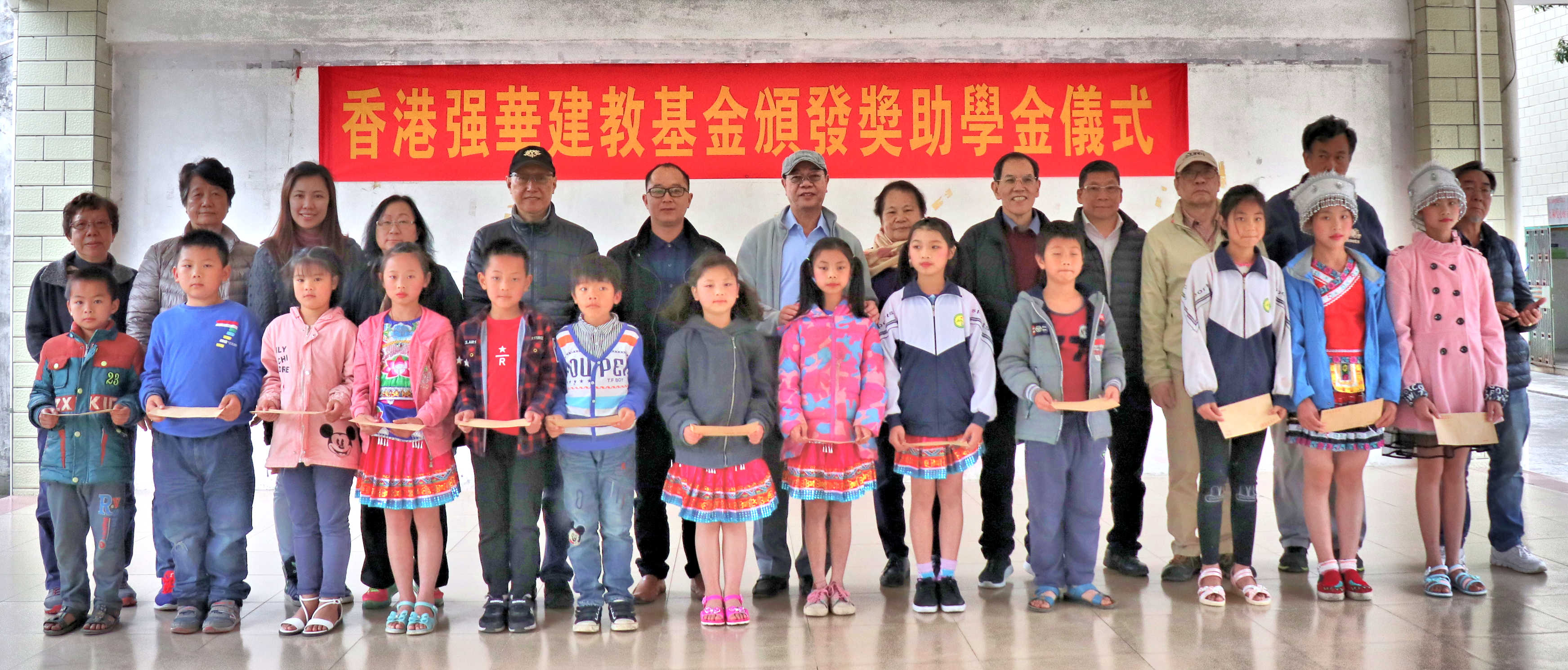 2020.03   強華建教基金每年三月派代表到韶關南雄「帽子峰文溥百齡學校」、粵北始興縣「深渡水民族學校」 和湛江雷州市「北和鎮中心小學」頒發獎、助學金。因肺炎疫情影響,本年度無法成行。於6月8日將獎助學金 (分別為人民幣一萬、佰仟及二萬) 滙給三間學校,由校方頒發予學生。